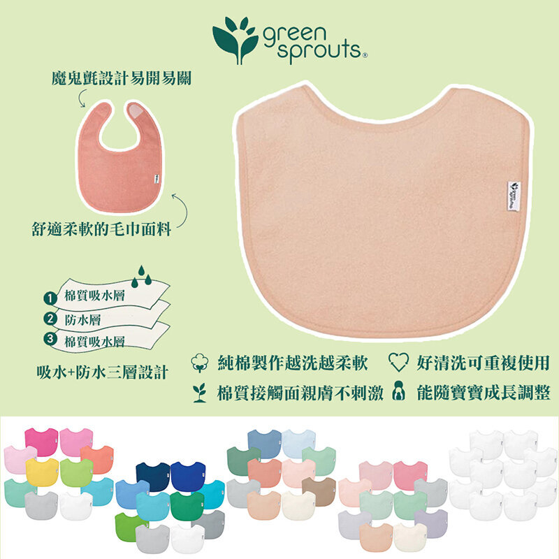 美國 green sprouts 小綠芽三層吸水/防水【口水巾圍兜】10入組_馬卡龍泡芙_GS101090-RS