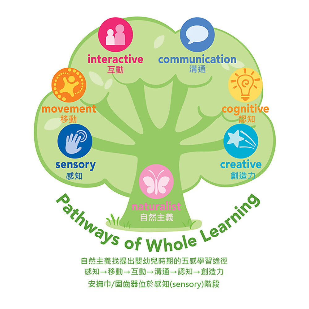 ※ 固齒器上有多種紋理設計,主要讓牙齦有不同程度按摩/舒緩,並為寶寶啃咬食創造不同感受,同時增加寶寶感官認知學習。