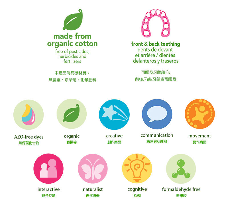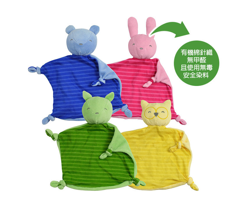 ※ 有機安撫巾,尾端打結設計,讓寶寶啃咬時牙齒有額外的舒緩的類似固齒器效果。