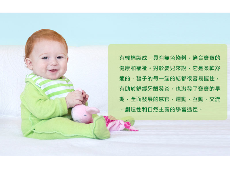 ※ 100%純棉有機細紗布安撫巾,有機材質,不用擔心寶寶啃咬、抓取,也十分細緻柔軟,使用後愈洗滌愈柔軟。