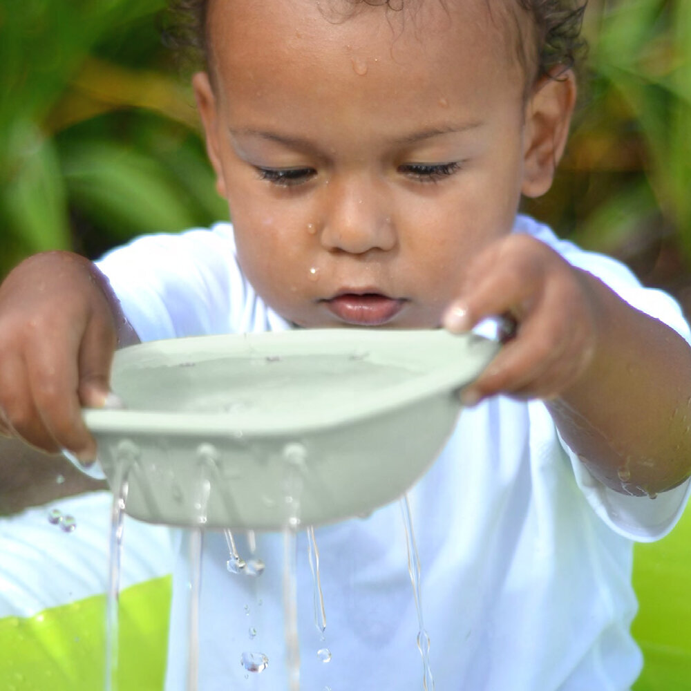 ※ 每個杯子都有不同的圖案孔,讓寶寶可以透過舀水、灑水或篩選沙子來探索多種玩法。