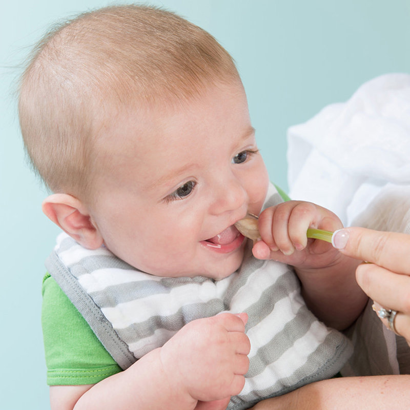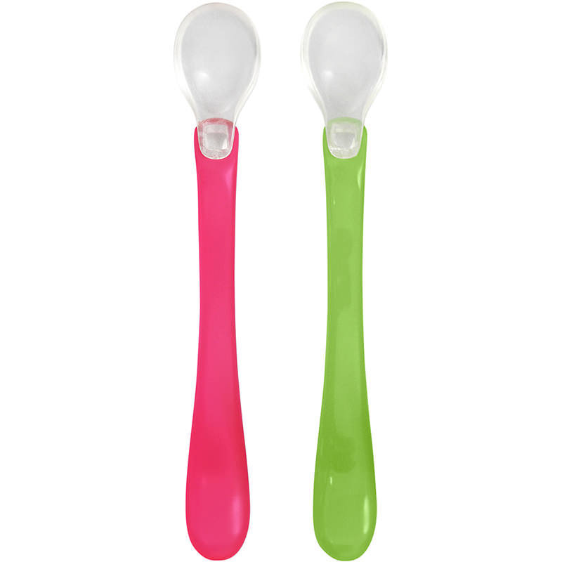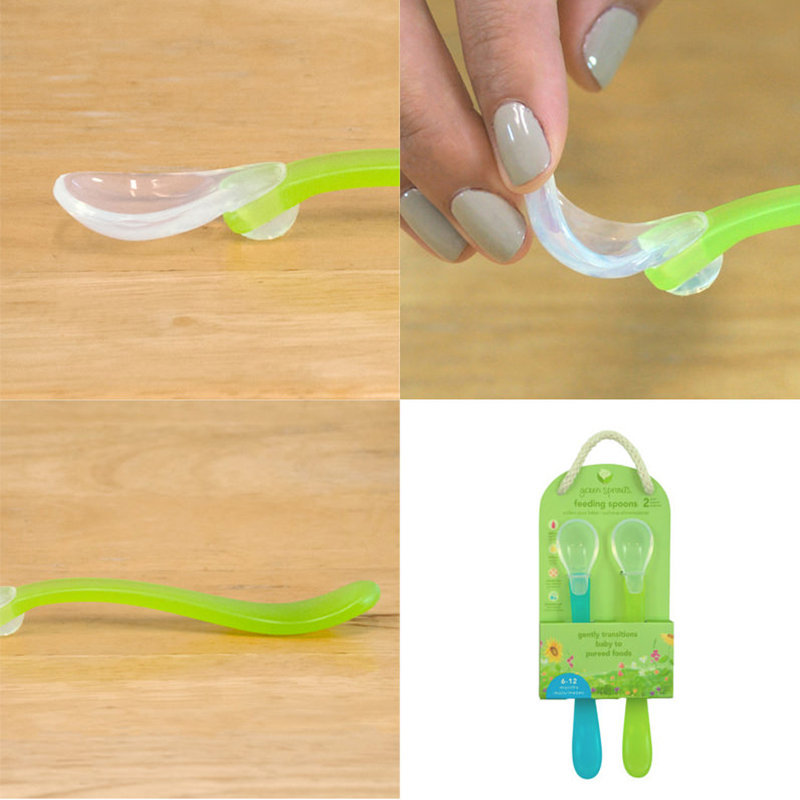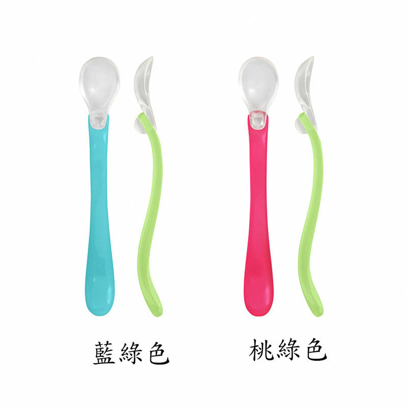 美國 green sprouts 小綠芽 寶寶學習吃飯矽膠防滑副食品湯匙2入組_桃綠色_GS172391-1