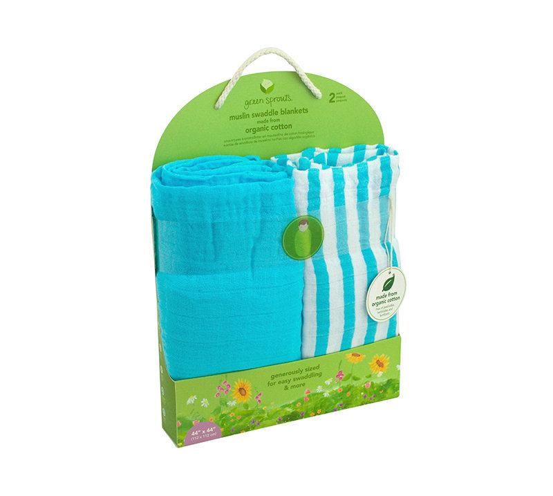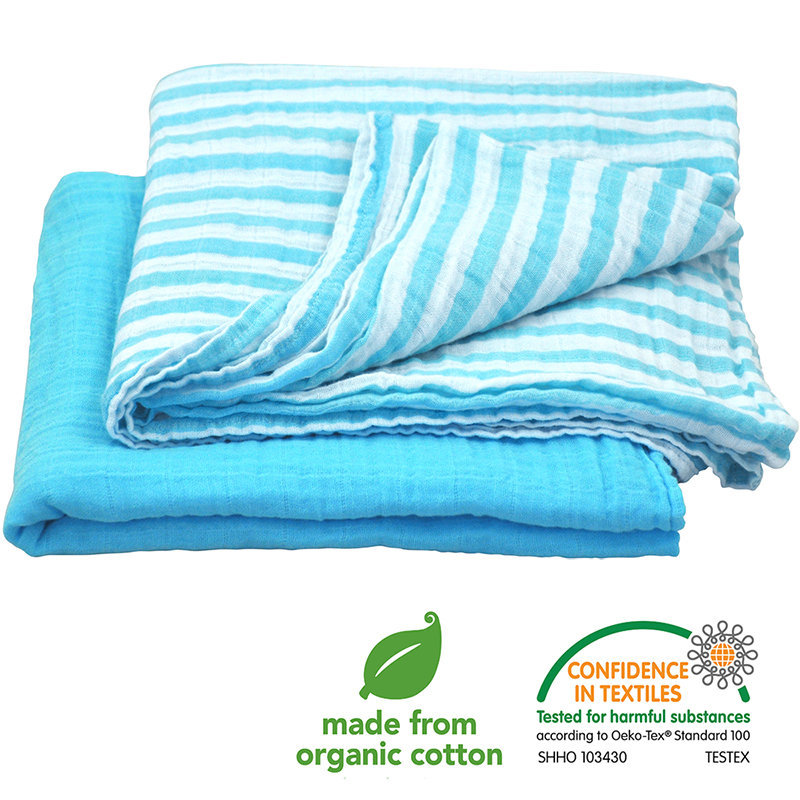 美國 green sprouts 小綠芽 有機棉細紗布浴巾/包巾/小被子/拍嗝巾 2入組_水藍組_GS334190-2