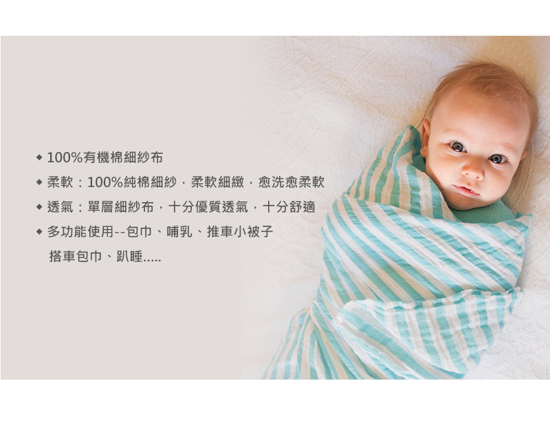 ※ 多功能使用--可當浴巾、包巾、拍嗝巾、推車小被子、搭車小棉被、趴睡、午睡小被子使用