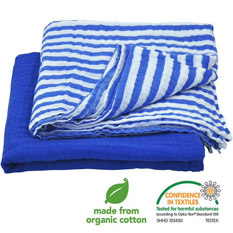 美國 green sprouts 小綠芽 有機棉細紗布浴巾/包巾/小被子/拍嗝巾 2入組_深藍組_GS334190-4