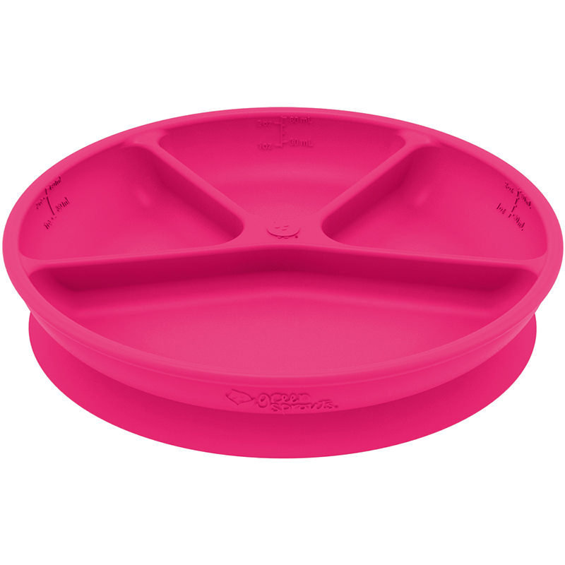 美國 green sprouts 小綠芽 超防滑寶寶吃飯矽膠學習餐盤_桃紅_GS152302-1