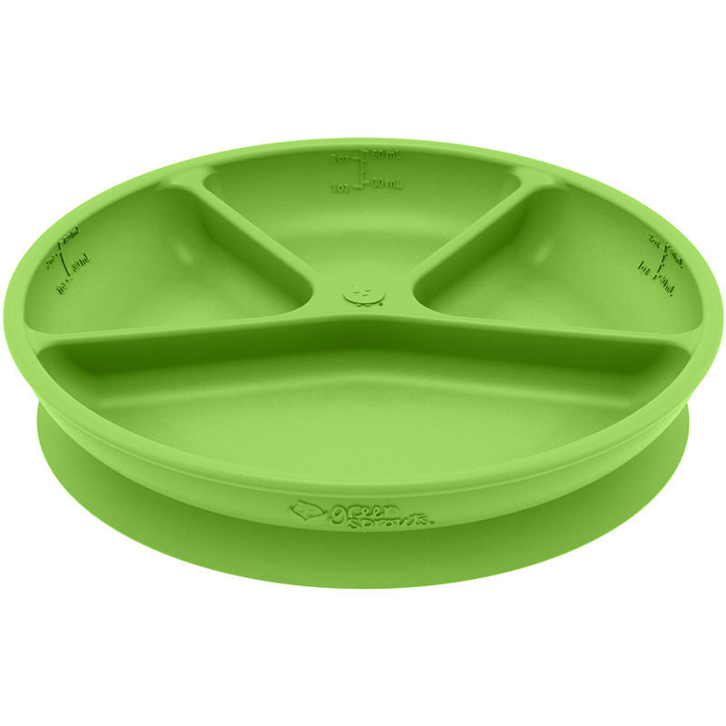 美國 green sprouts 小綠芽 超防滑寶寶學習吃飯矽膠學習餐盤_草綠_GS152302-2