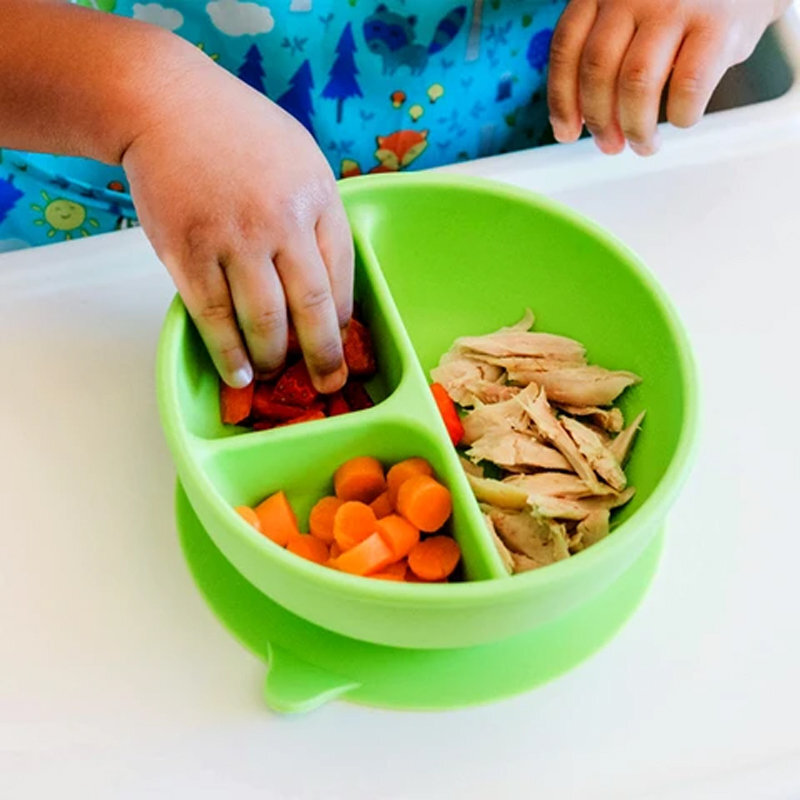 美國 green sprouts 小綠芽 超防滑寶寶學習吃飯矽膠學習餐碗_草綠_GS152303-2