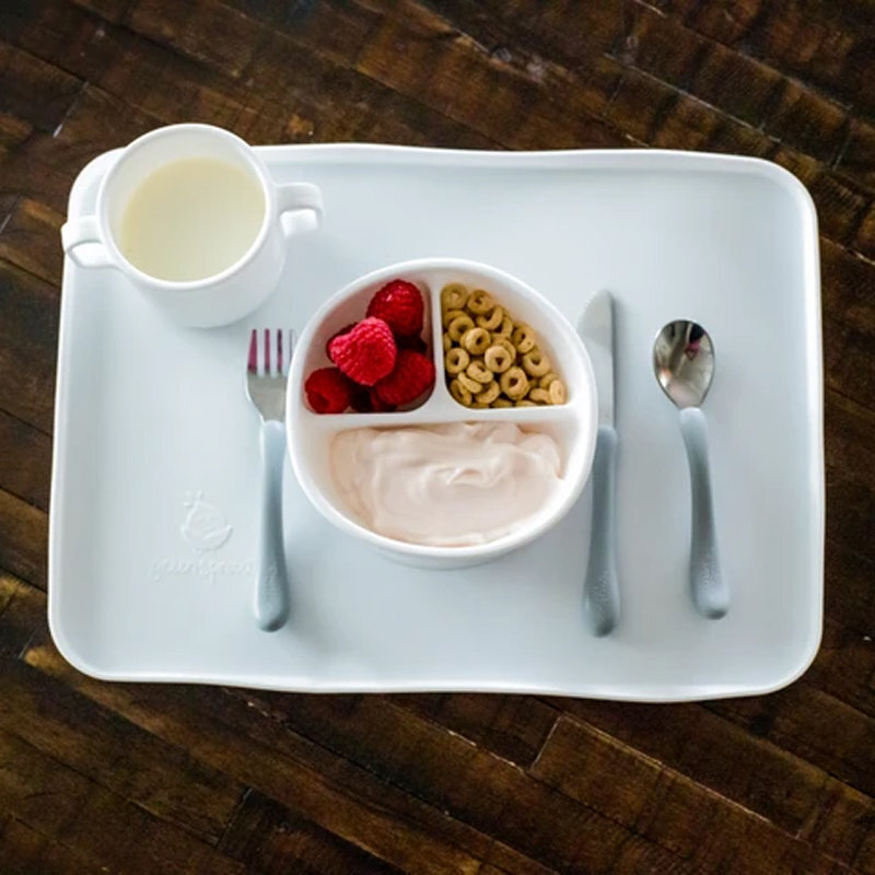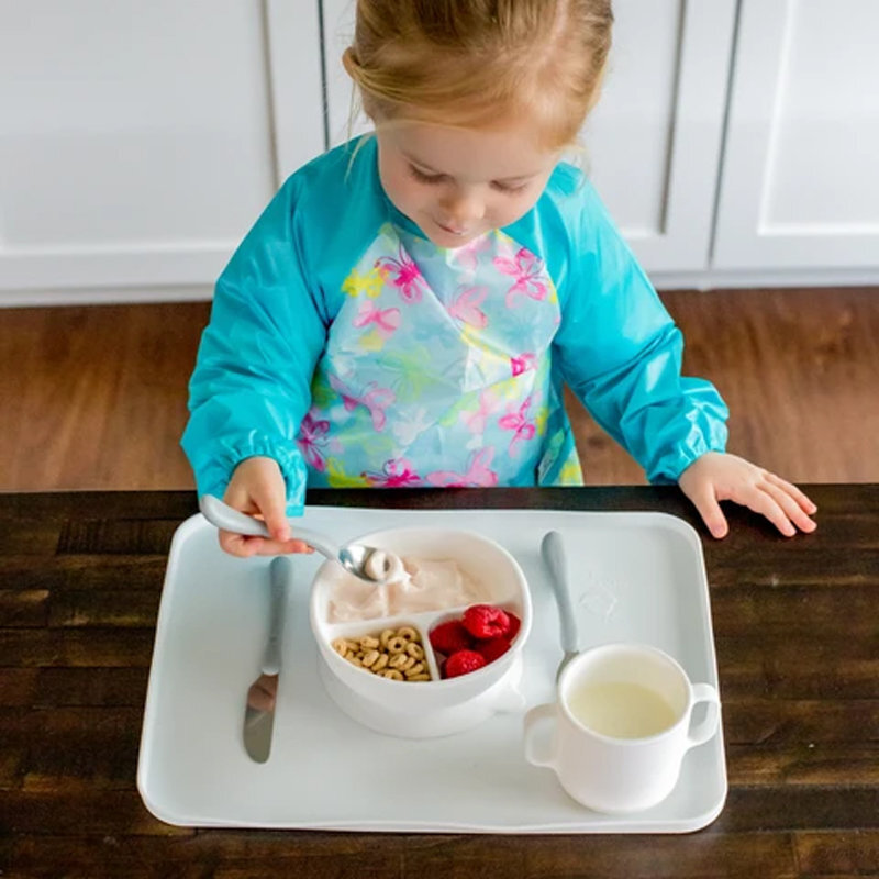 美國 green sprouts 小綠芽 超防滑寶寶學習吃飯矽膠學習餐碗_純白_GS152303-W