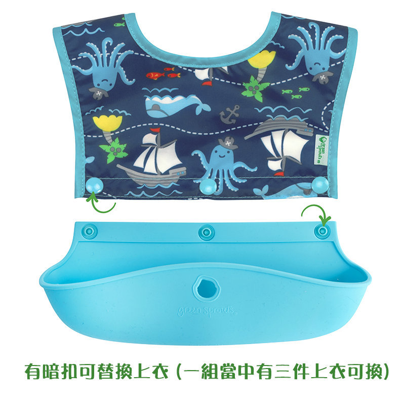 ※ 三入一組包含【三個圍兜套+一個矽膠防食物掉落盒】三個圍兜套可互換