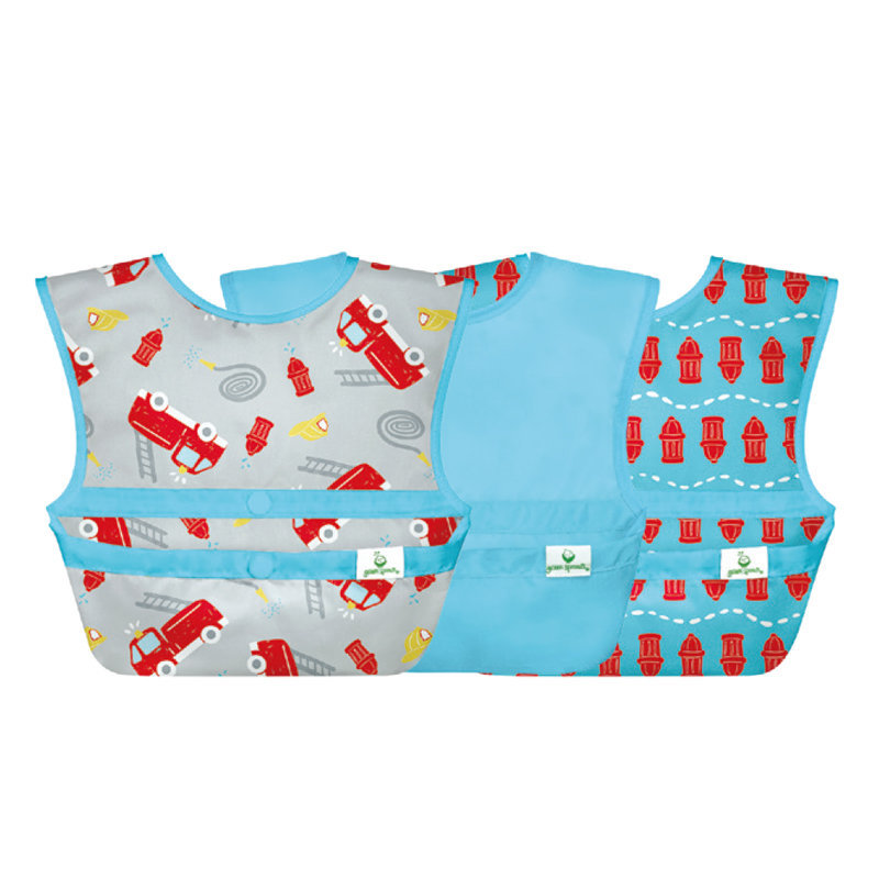 美國 green sprouts 小綠芽 魔鬼氈雙面防水/防食物掉落圍兜/【吃飯圍兜】三入組_消防車_ GS101247-GF