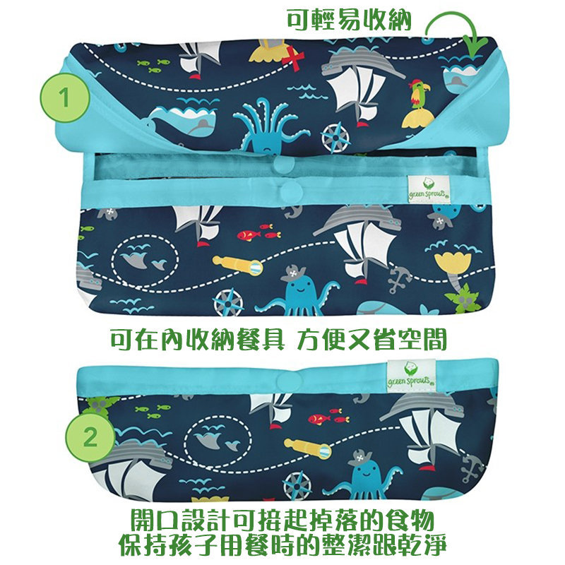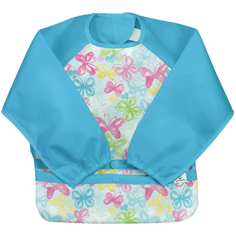 美國 green sprouts 小綠芽 魔鬼氈雙面防水/防食物掉落長袖圍兜單入組 _ 蝴蝶滿園_GS101357AWB