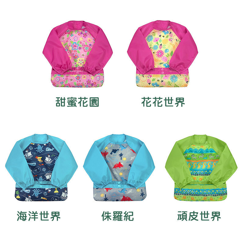 ※ 長袖圍兜可以避免寶寶全身弄得髒兮兮~維持清爽乾淨,媽媽放心讓寶寶自己學習進食,飯後只要擦拭或清洗圍兜即可~