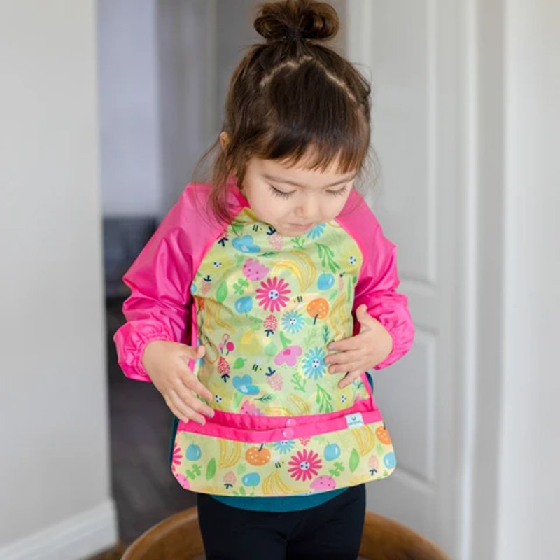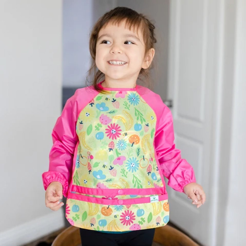 美國 green sprouts 小綠芽 魔鬼氈雙面防水/防食物掉落長袖圍兜單入組 _ 花花世界_GS101357PBF