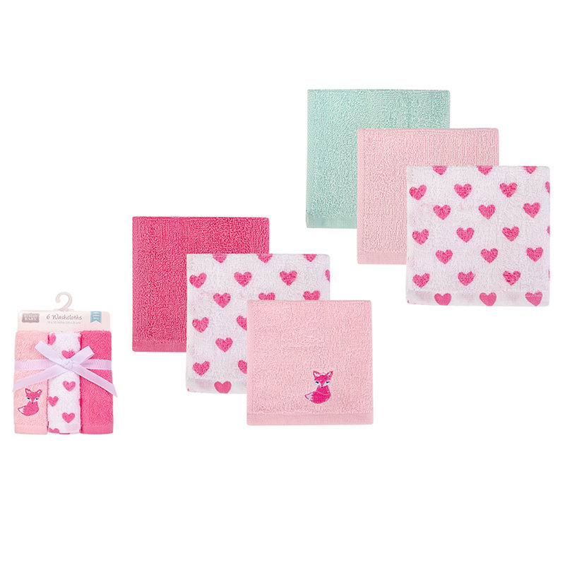 美國 luvable friends 甜蜜寶貝 多功能嬰幼兒100%純棉小方巾/洗澡巾/擦嘴巾6入組(25*25cm)_愛心狐狸(LF05966)