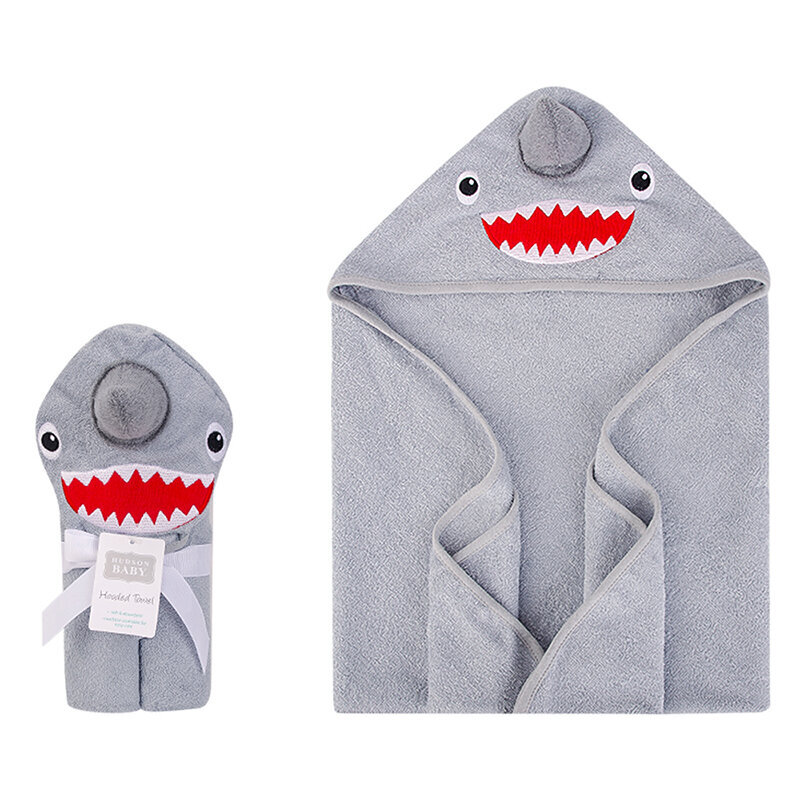 美國 luvable friends 甜蜜寶貝 嬰幼兒動物造型連帽浴巾/包巾 76x76cm_灰鯊魚_LF56490