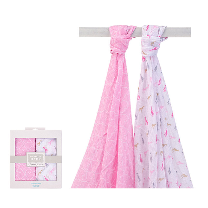 美國 luvable friends 甜蜜寶貝 多用途嬰兒棉紗包巾2入禮盒組_愛心長頸鹿(LF00928)