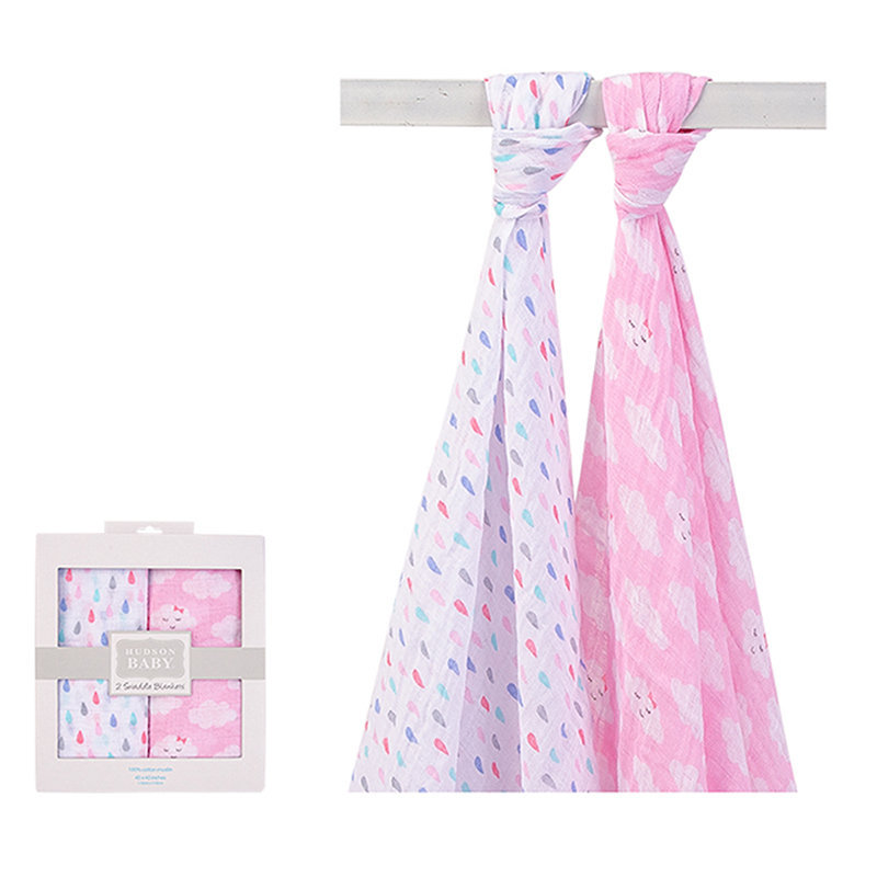 美國 luvable friends 甜蜜寶貝 多用途嬰兒棉紗包巾2入禮盒組_粉紅白雲(LF00929)