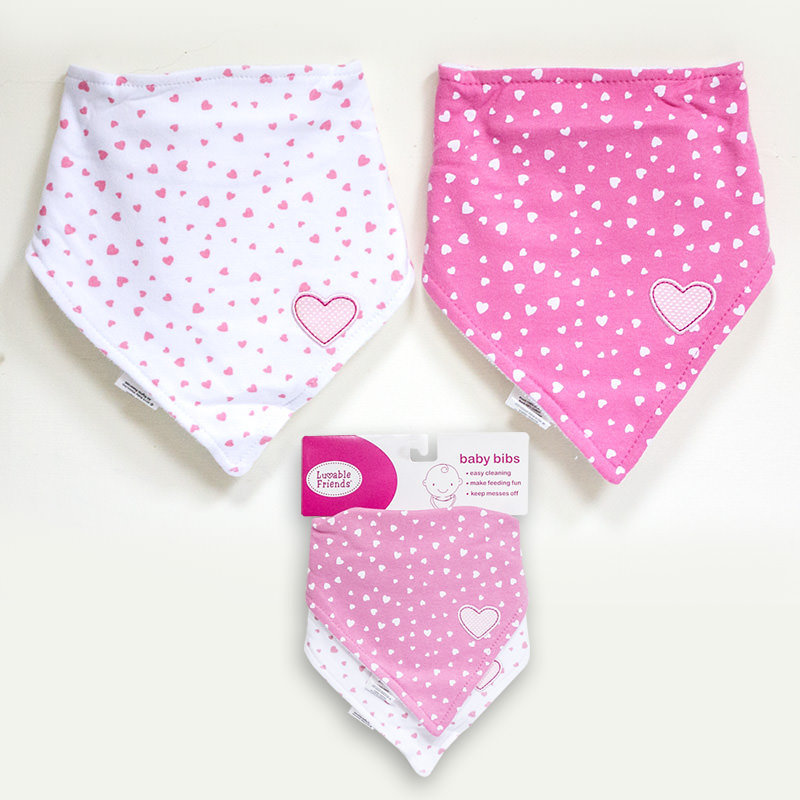 美國 luvable friends 甜蜜寶貝 嬰幼兒三角領巾圍兜2入組_粉色愛心(LF70050)