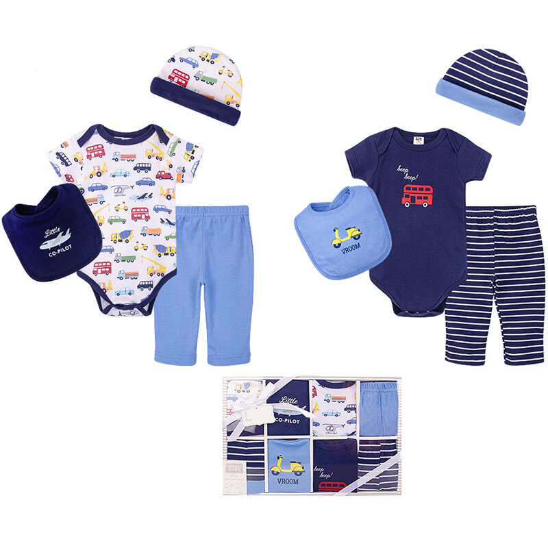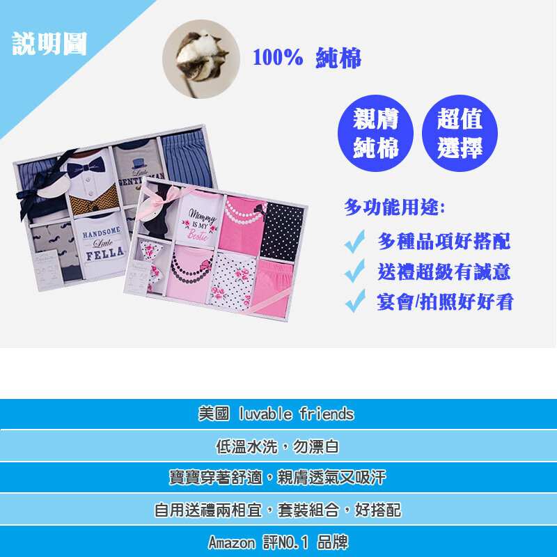 美國 luvable friends 甜蜜寶貝 嬰幼兒包屁衣與長褲最佳送禮8入彌月禮盒組_交通大隊_LF10190