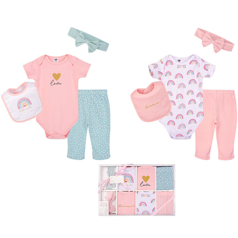 美國 luvable friends 甜蜜寶貝 嬰幼兒包屁衣與長褲最佳送禮8入彌月禮盒組_彩虹之夢_LF10191