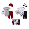 ※ 初生嬰兒八件禮盒組內容:帽子*2頂、短袖造型包屁衣*2件、褲子*2件、圍兜*2個