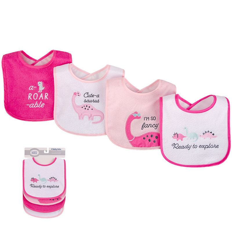 美國 luvable friends 甜蜜寶貝 嬰幼兒口水巾圍兜5入組(上層棉質吸水/底層防水)_恐龍小姐(LF01786)