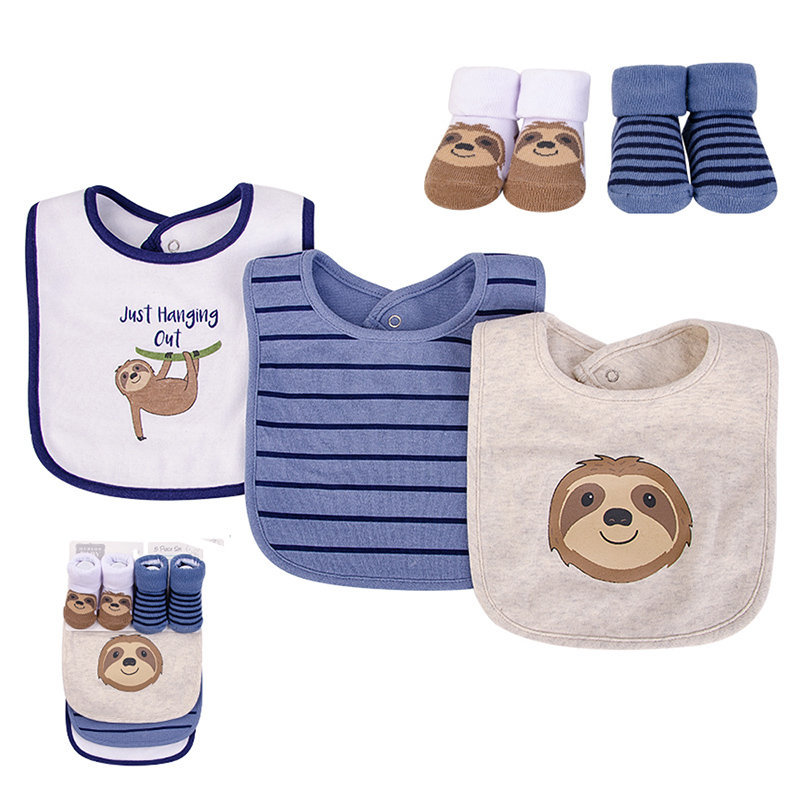美國 luvable friends 甜蜜寶貝 嬰幼兒吸水口水巾圍兜與短襪組_藍色樹懶(LF17590)
