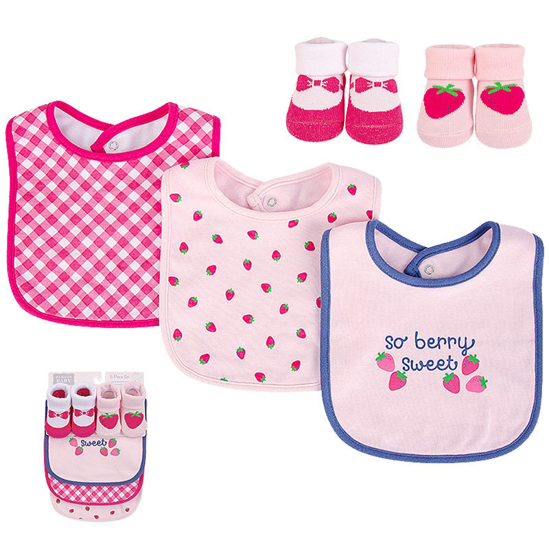 美國 luvable friends 甜蜜寶貝 嬰幼兒吸水口水巾圍兜與短襪組_草莓甜心(LF17608)
