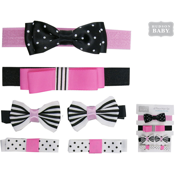 美國 luvable friends 甜蜜寶貝 嬰幼兒新生兒髮帶和髮夾6入組_經典蝴蝶結(51018)