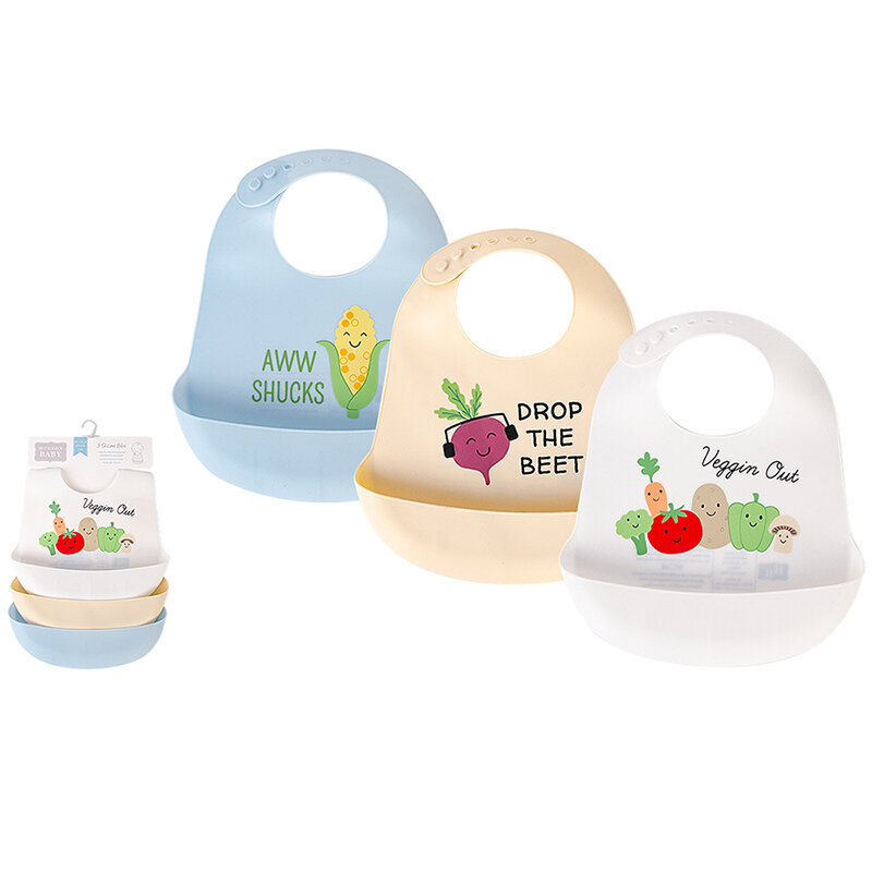 美國 luvable friends 甜蜜寶貝 嬰幼兒矽膠立體圍兜3入_健康蔬食_LF56358
