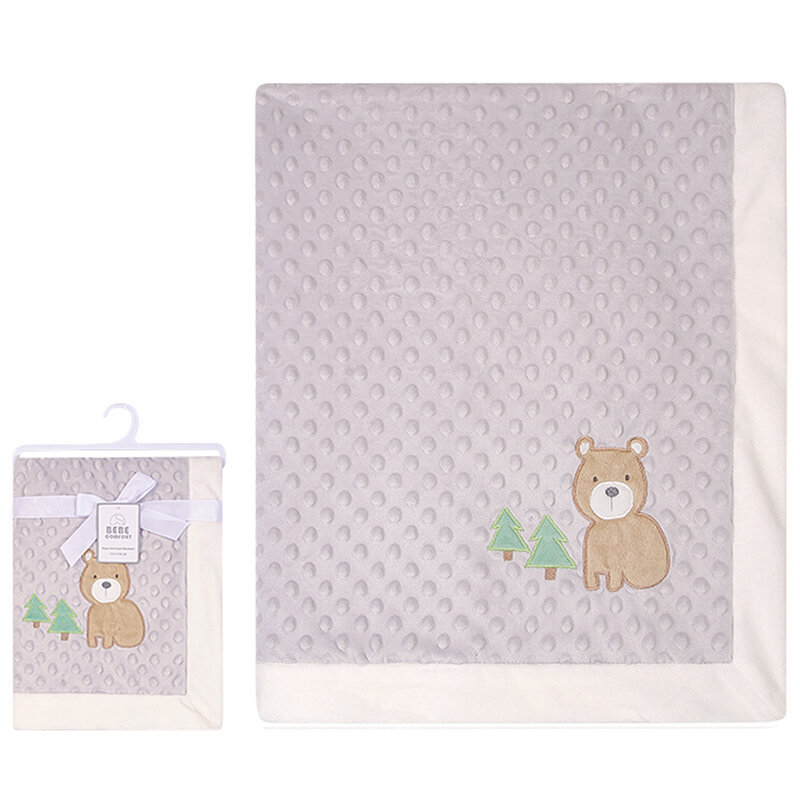 美國 luvable friends 甜蜜寶貝 超柔軟繡花泡泡毯/包巾/嬰兒被/安撫毯 100x75cm_棕熊之家_LF51923