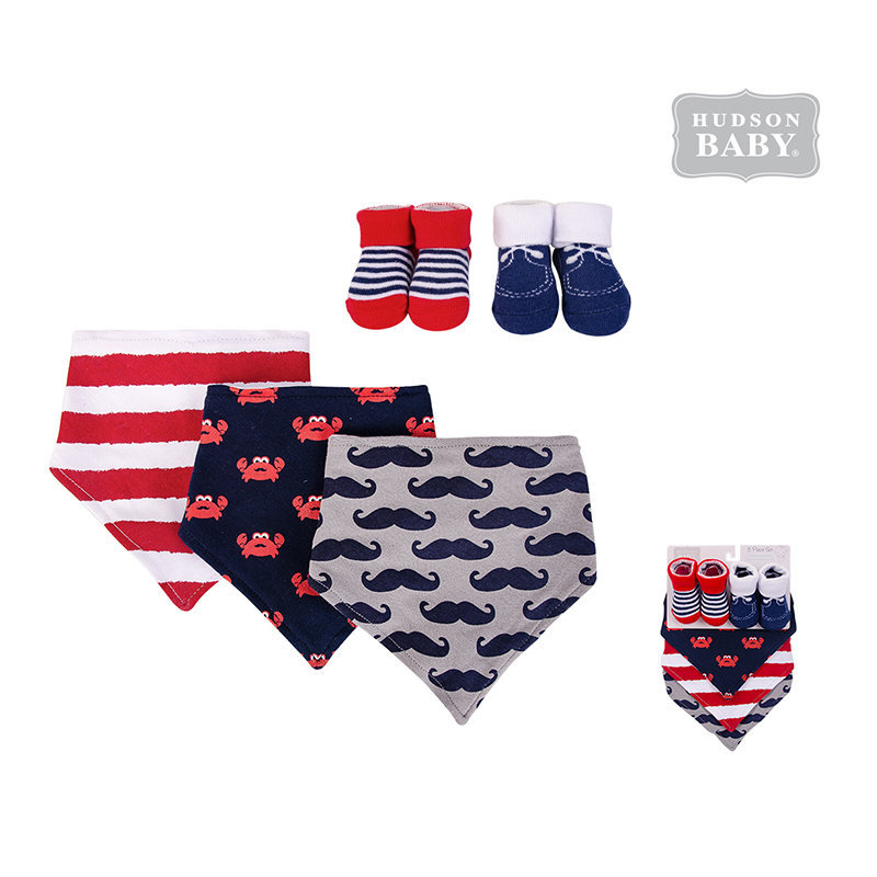 美國 luvable friends 甜蜜寶貝 100%純棉三角領巾3入組+短襪2入套裝組_淘氣螃蟹(LF56202)