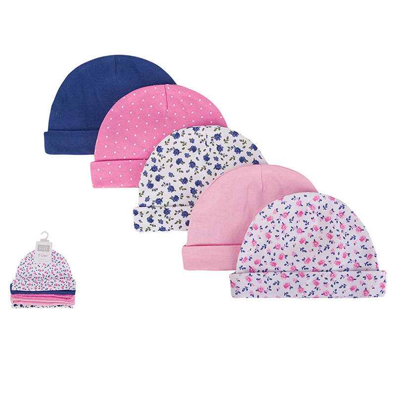 美國 luvable friends 甜蜜寶貝 100%純棉新生兒棉帽 保暖帽5件組_粉藍小花(LF52326)
