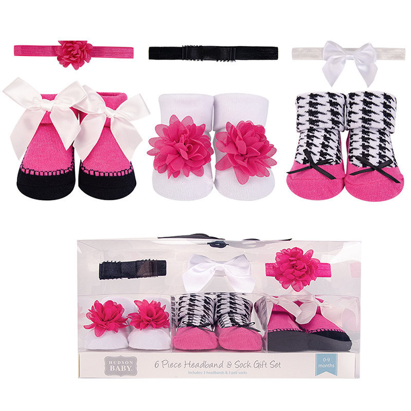 美國 luvable friends 甜蜜寶貝 3入嬰幼兒髮飾+3入嬰兒襪/寶寶襪/初生襪禮盒組_小貴婦(LF58254)
