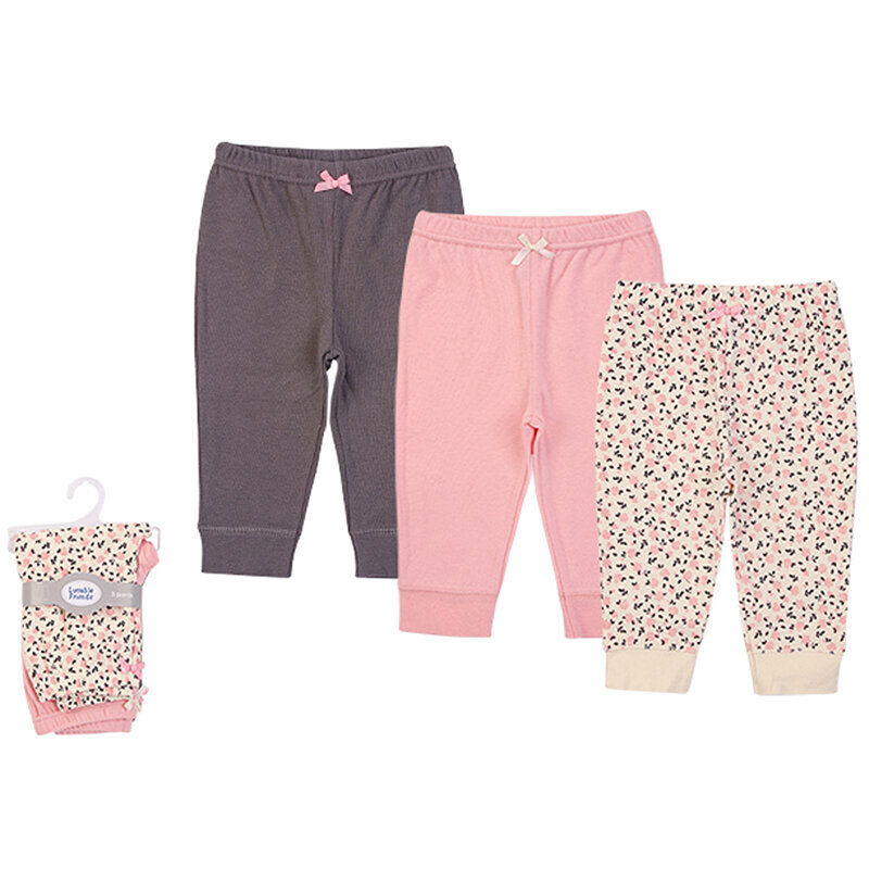 美國 Luvable Friends 100%純棉嬰幼兒長褲3件組_粉白碎花