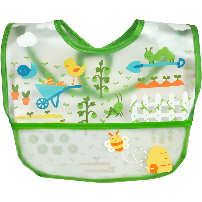 美國green sprouts 小綠芽 魔鬼氈雙面防水/防食物掉落圍兜/【吃飯圍兜】單入組_綠色花園_GS101361-2
