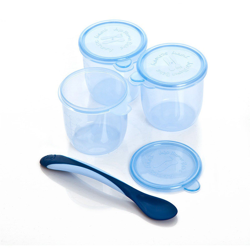 英國 JoJo Maman BeBe 嬰幼兒副食品外帶盒三入組(搭配一隻小湯匙)_(JJPWW-02)