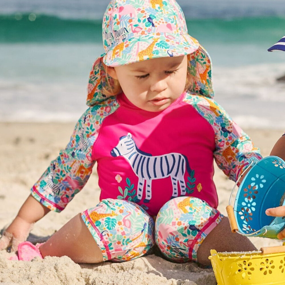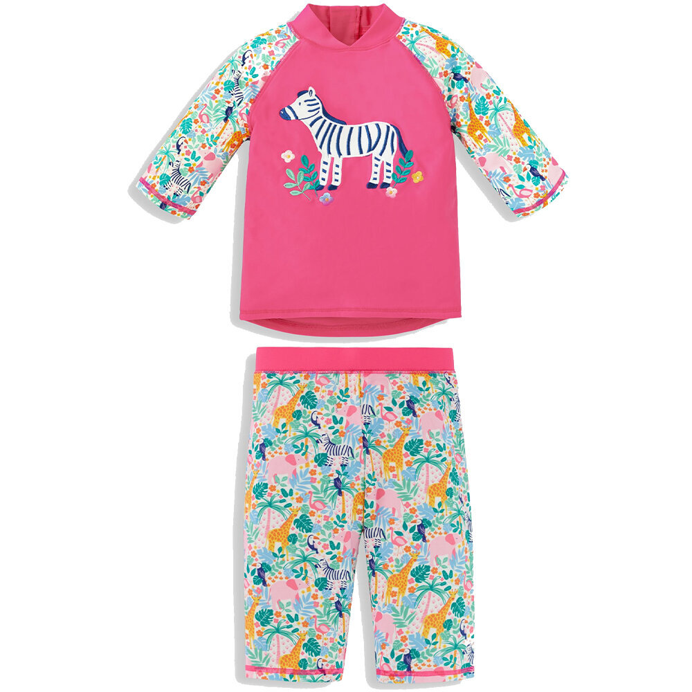 英國 JoJo Maman BeBe 嬰幼兒/兒童兩件式防曬泳裝_花園斑馬_JJH1331