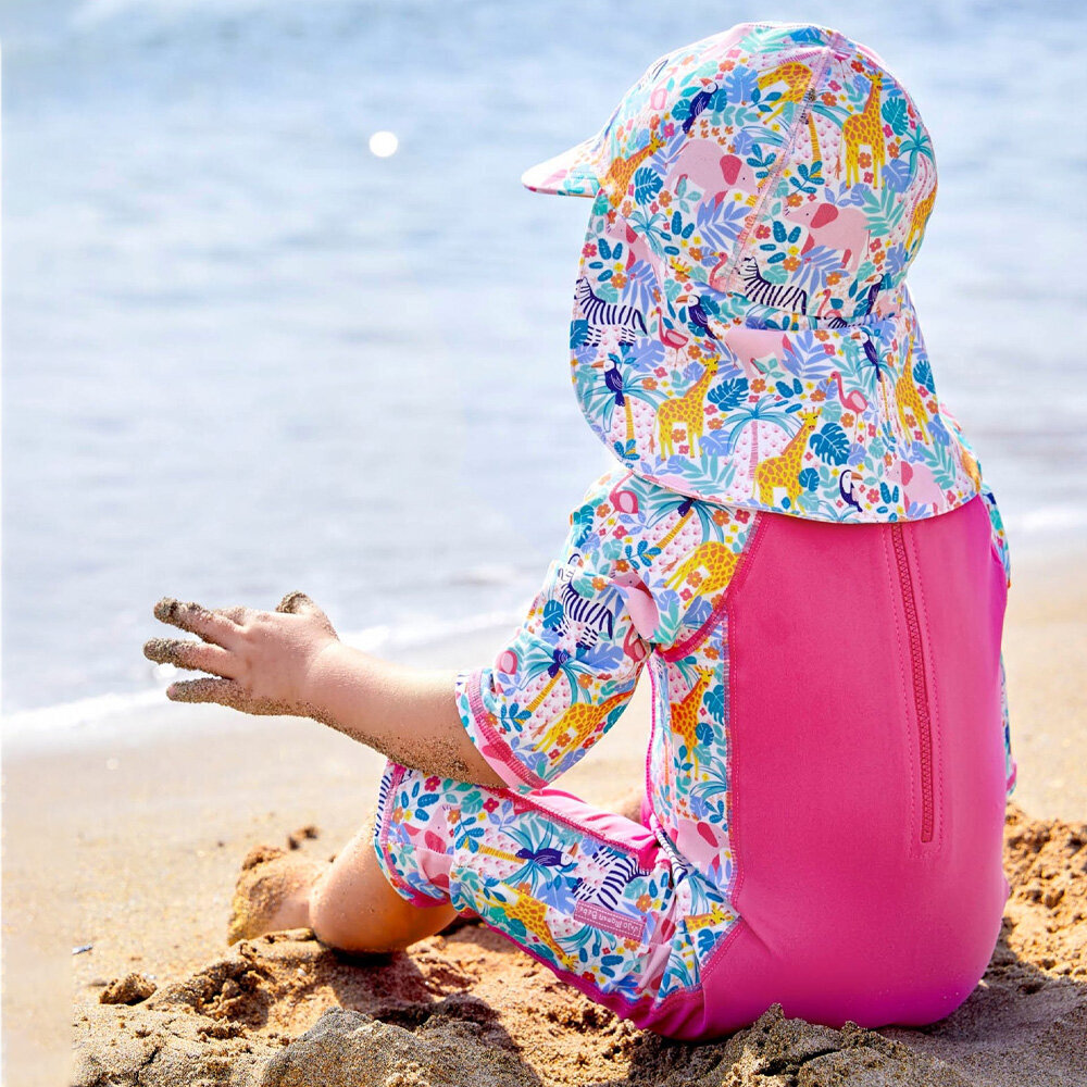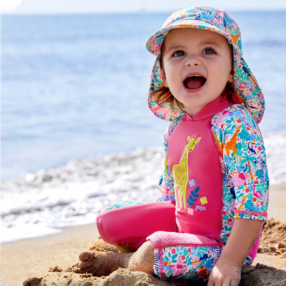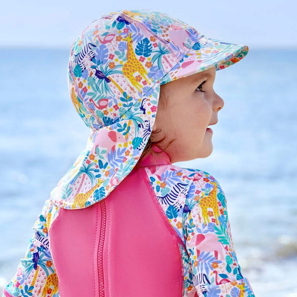 英國 JoJo Maman BeBe 嬰幼兒/兒童泳裝戲水UPF50+防曬護頸遮陽帽_七彩花園 (JJH1334)