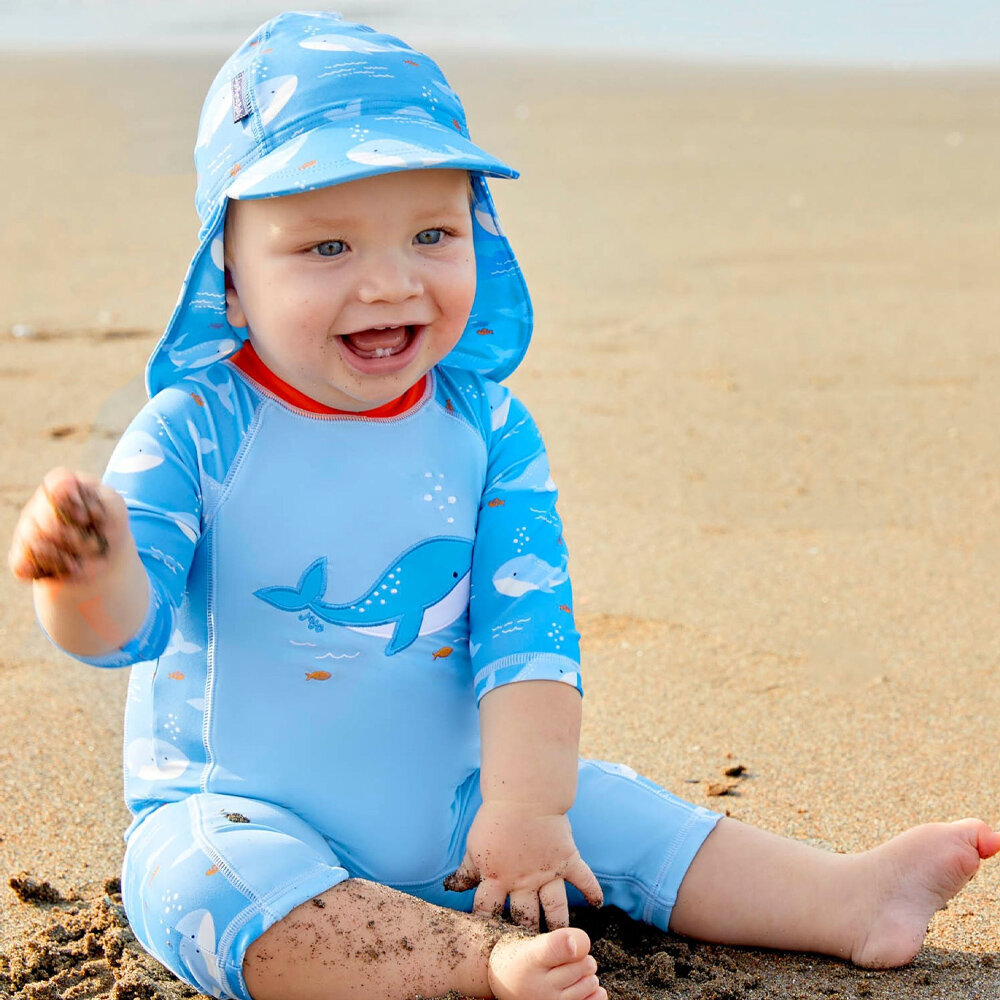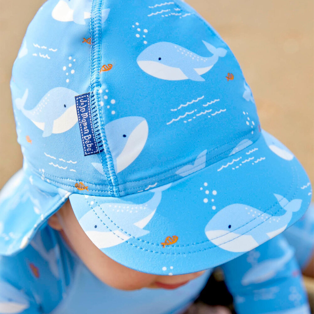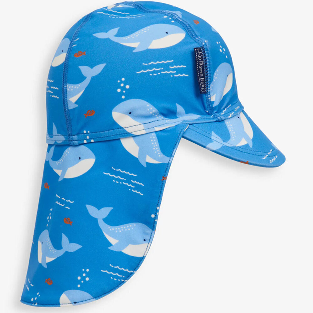 英國 JoJo Maman BeBe 嬰幼兒/兒童泳裝戲水UPF50+防曬護頸遮陽帽_海洋鯨魚(JJH2454)