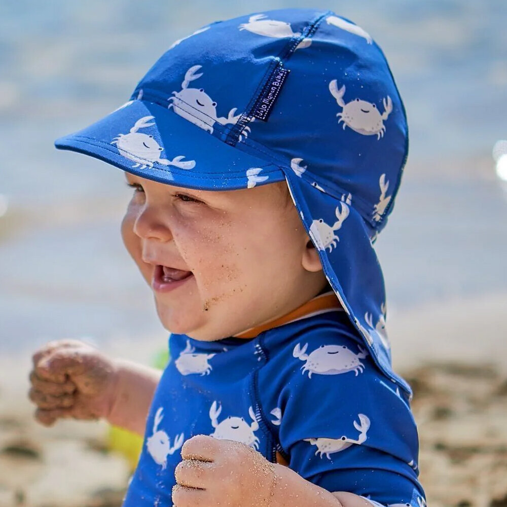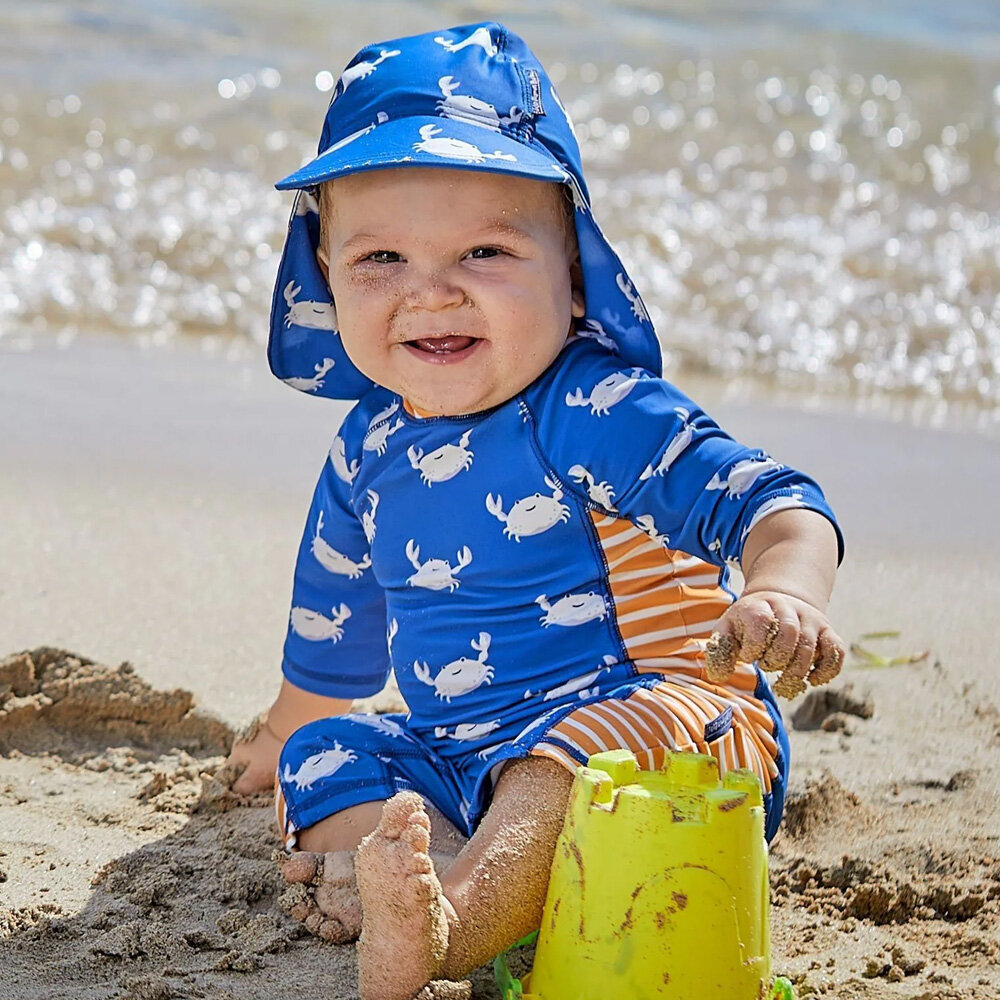 英國 JoJo Maman BeBe 嬰幼兒/兒童泳裝戲水UPF50+防曬護頸遮陽帽_白螃蟹_JJL2754
