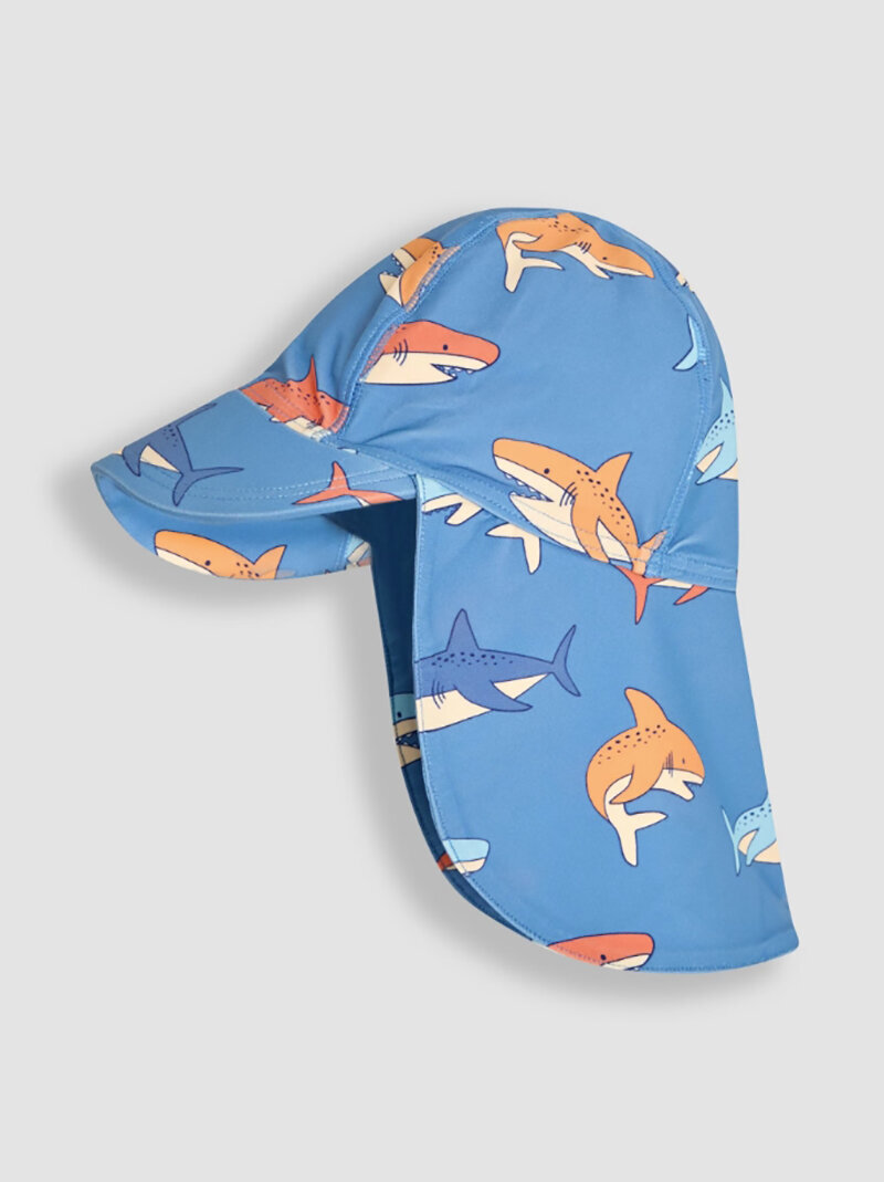 英國 JoJo Maman BeBe 嬰幼兒/兒童泳裝戲水UPF50+防曬護頸遮陽帽_鯊魚群_JJL5506