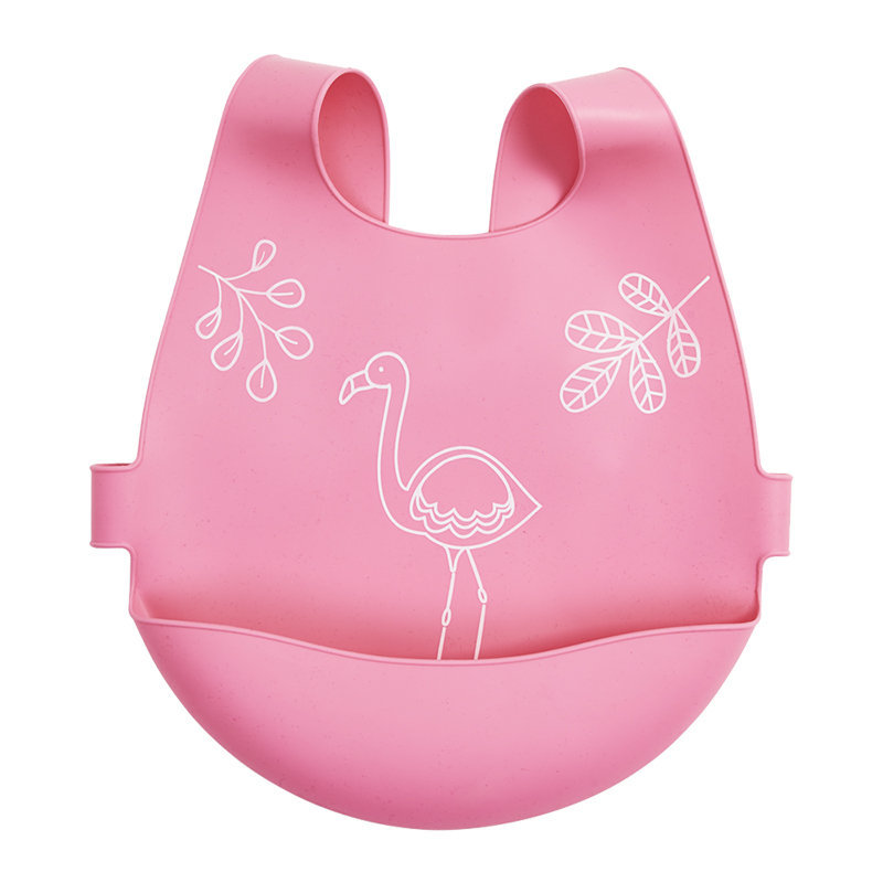 英國 JoJo Maman BeBe 矽膠防掉落食物穿式圍兜_紅鶴(JJD4465P)