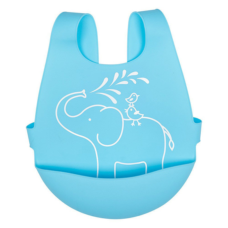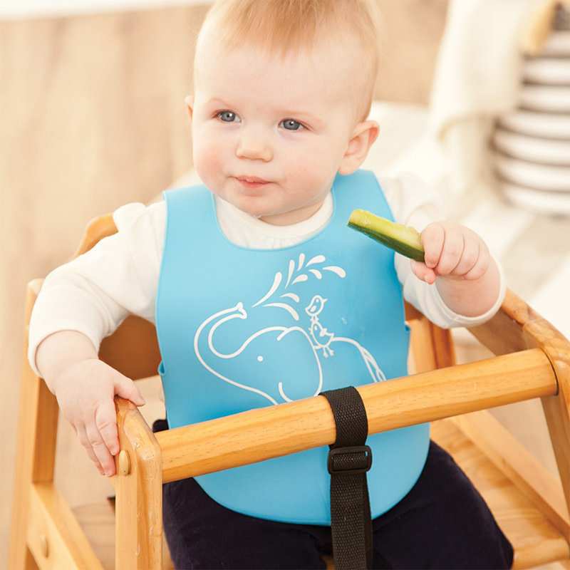 英國 JoJo Maman BeBe 矽膠防掉落食物袋穿式圍兜_ 大象與鳥(JJD4465B)