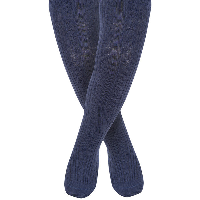 英國 JoJo Maman BeBe 編織螺紋寶寶小童內搭褲襪/保暖襪_海軍藍(JJCable001)