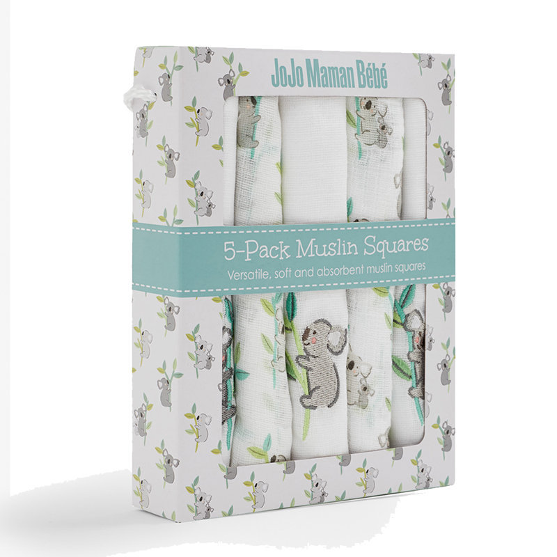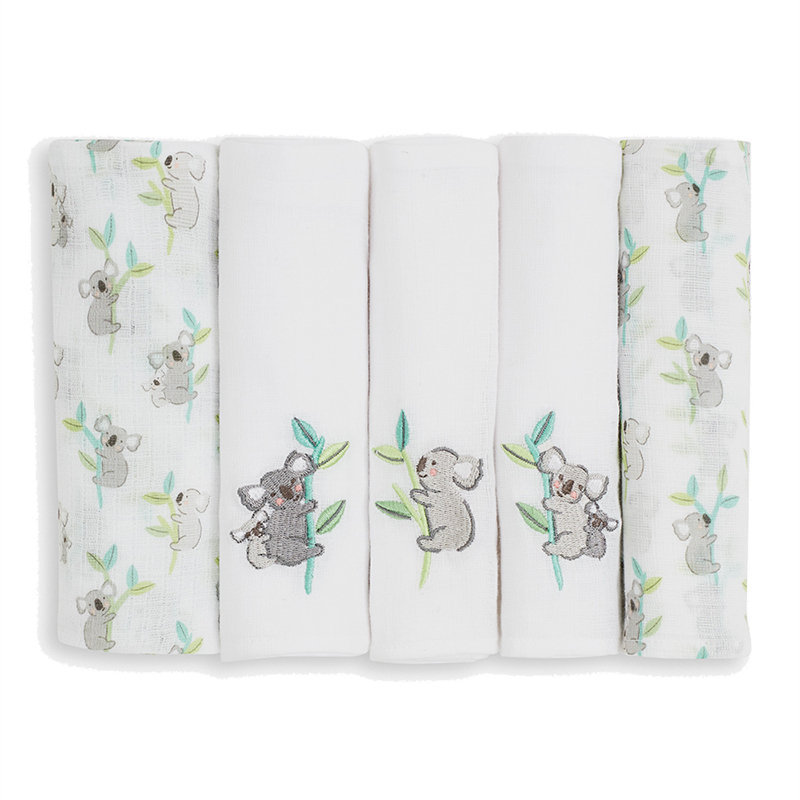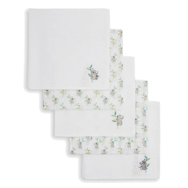 英國 JoJo Maman BeBe 100% 純棉多功能細紗布包巾/小薄被/拍嗝巾/安撫巾 5入組(60*60cm)_無尾熊 (JJE6505)