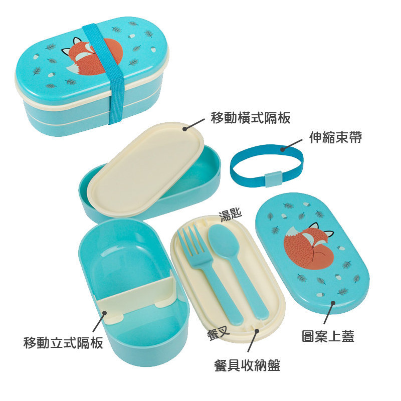 英國 Rex London 圓形三層午餐盒/便當盒/野餐盒(附2入餐具)_溫柔狐狸_RL25743