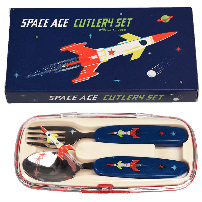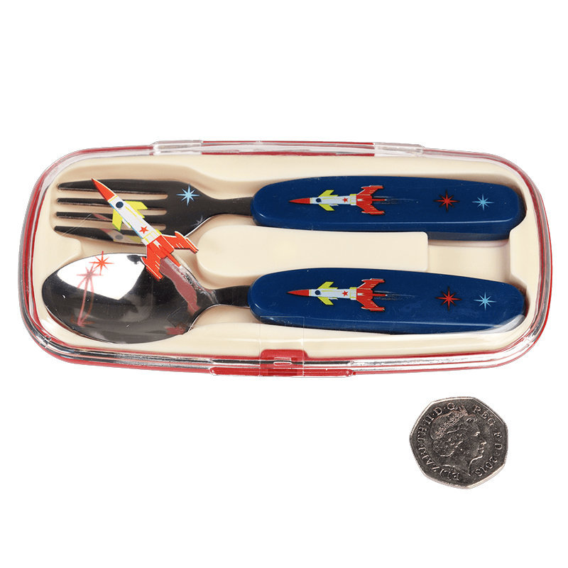 英國 Rex London 幼兒/兒童餐具2入組(附收納盒)_太空梭_RL29127