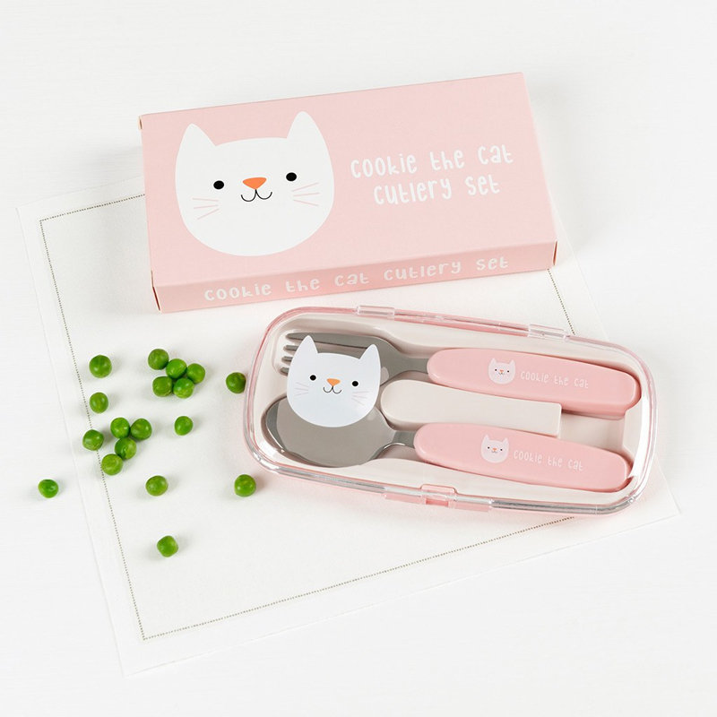 英國 Rex London 幼兒/兒童餐具2入組(附收納盒)_迷人貓咪_RL29129